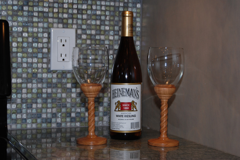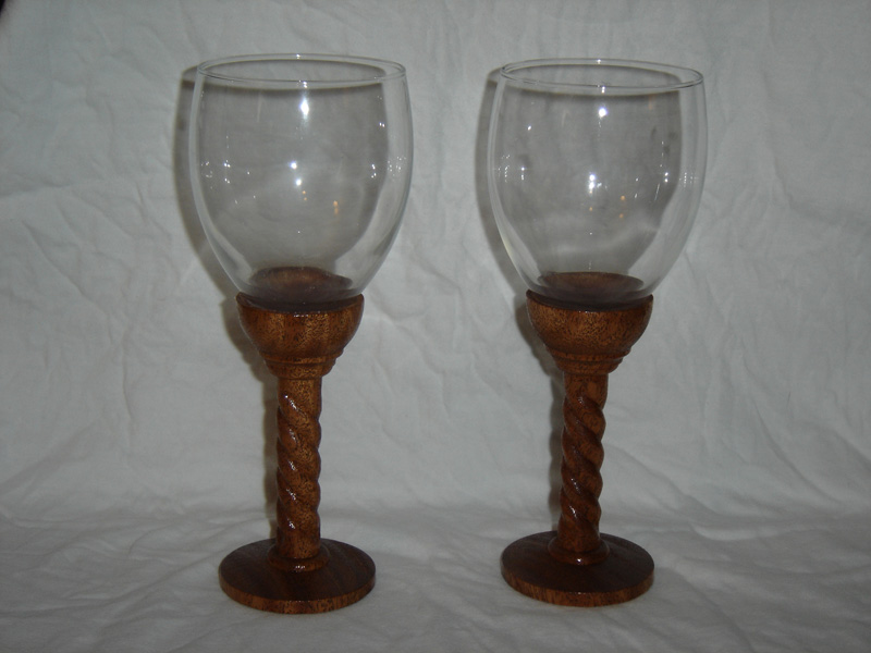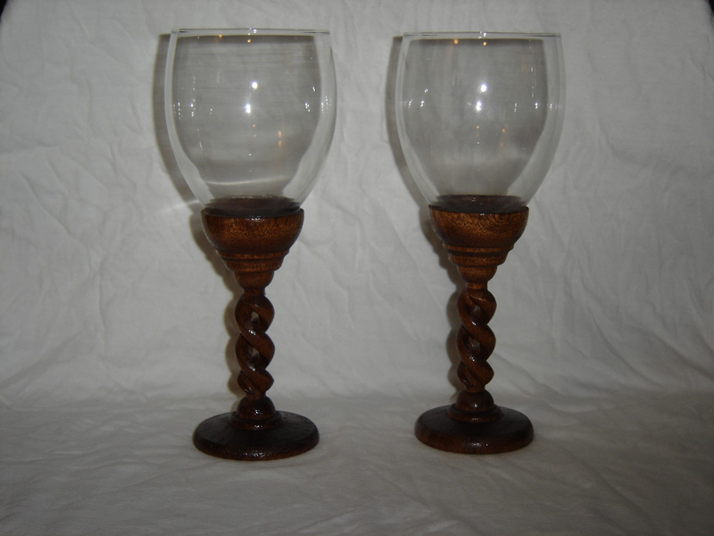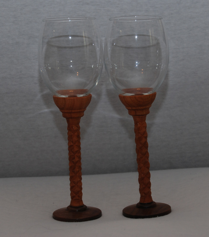 * SAMPLE * Cherry stem, black walnut base, quilted diamond pattern, $50 for pair, $27.50 each.